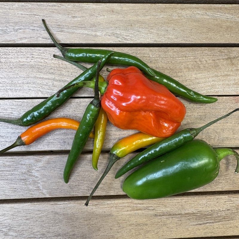Peberfrugter her finder du de klassiske grønne, røde, gule og orange varianter, og et udvalg af chilier og andre peber typer.